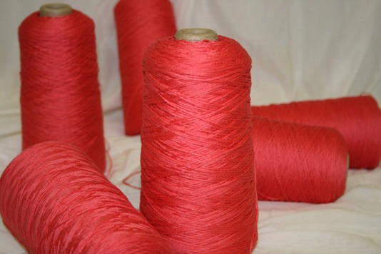 選擇各種紗支的紗線(xiàn),制成帶子紗或各式多股線(xiàn),調(diào)整紡紗、燒毛、絲光、染色等工藝,制成光澤好、手感好、結(jié)頭少等。